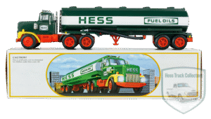 1964–1965 Tanker Trailer The first-ever Hess Toy Truck. Features working lights and a unique water-fillable tank with hose.