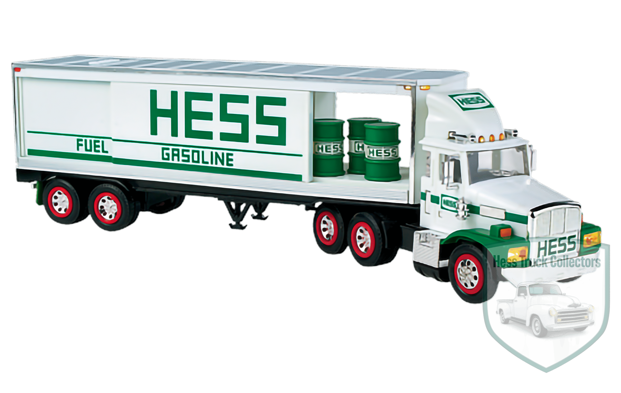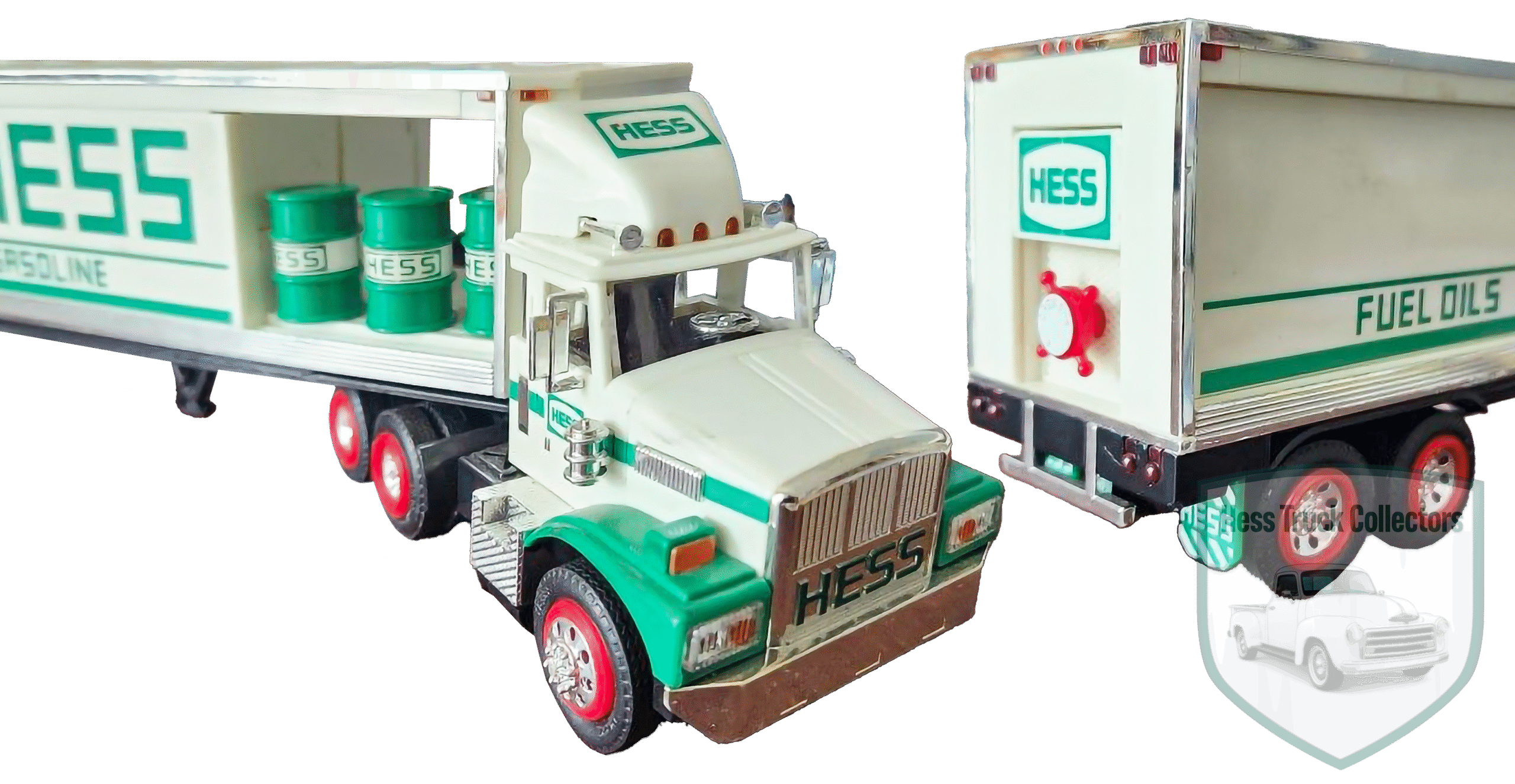 - Color Scheme: The truck features the classic late-80s Hess colors: a dark green cab and a white trailer body.