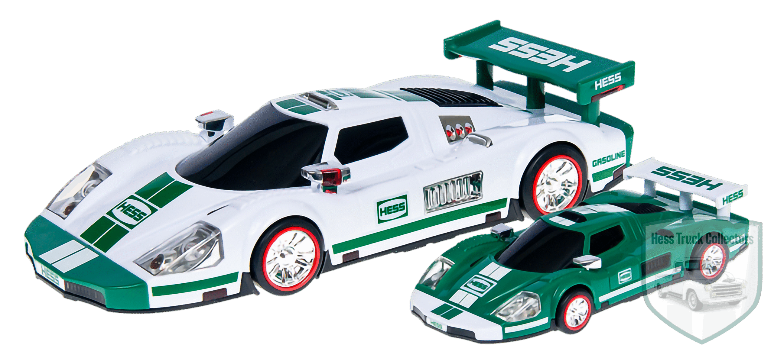 The 2009 Hess Race Car and Racer celebrated the 45th Anniversary of the Hess Toy Truck tradition. It was an unconventional release, notable for being the first time a race car was the main featured vehicle rather than an 18-wheeler. This two-in-one set delivered high speed and high tech in a sleek, streamlined package.