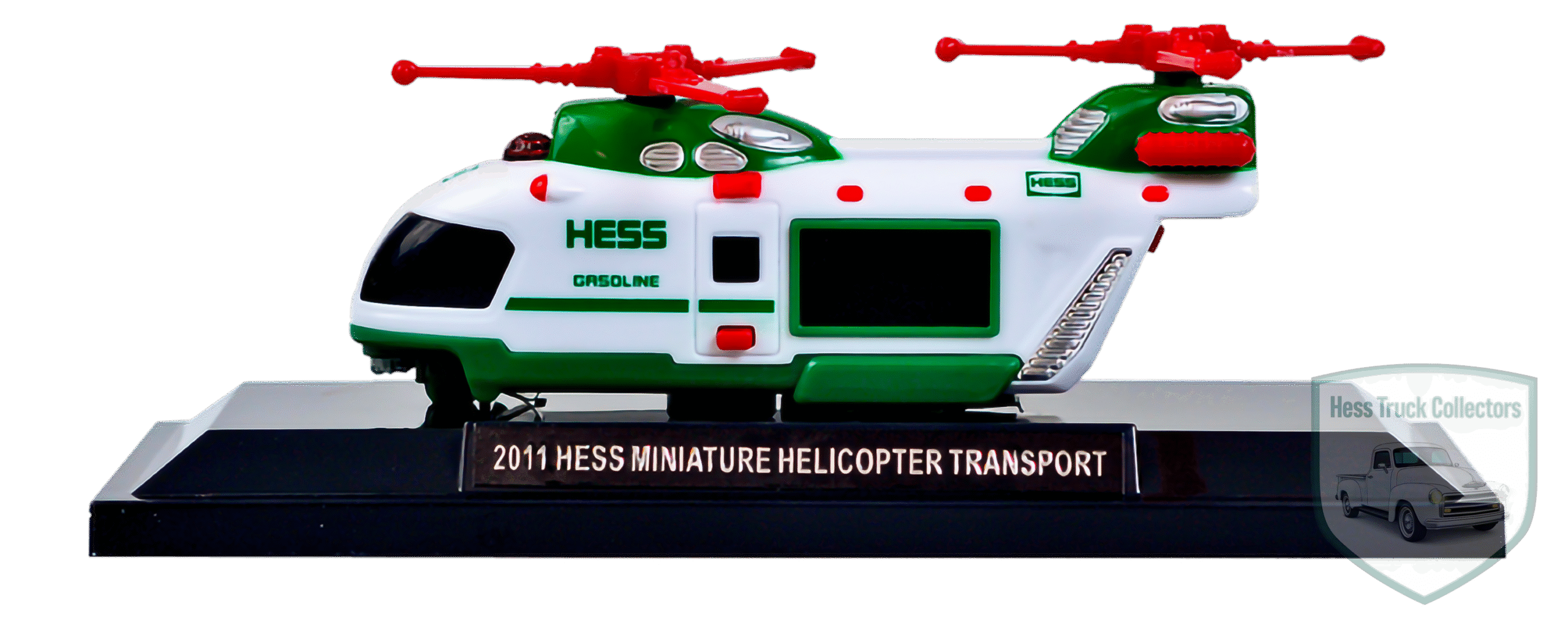 The 2011 Hess Miniature Helicopter Transport was a specialized aerial-themed Mini. This small-scale model provided collectors with a compact version of a complex, three-in-one set, focusing primarily on the main aerial vehicle from that previous release.