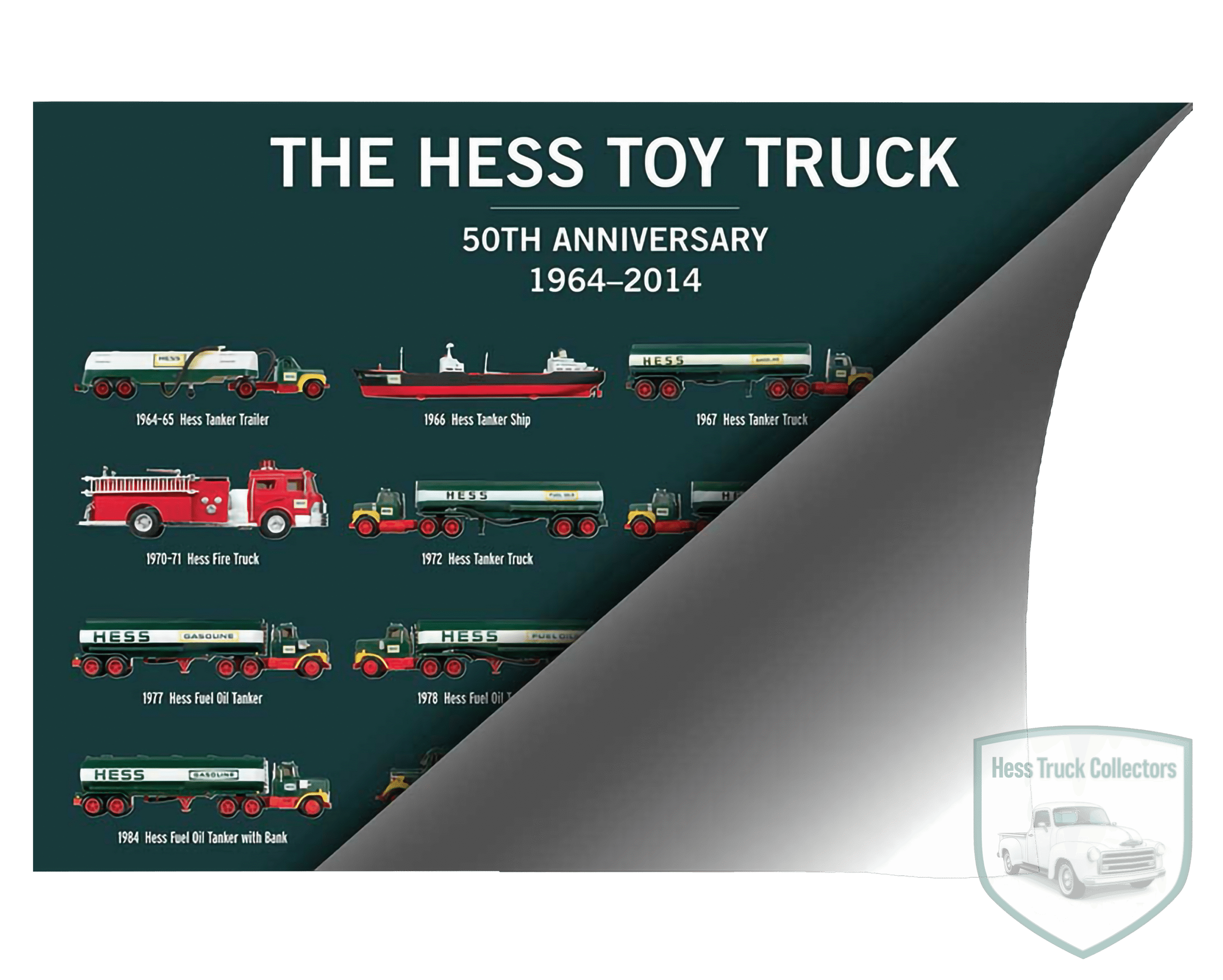 The 2014 50th Anniversary Collectible Poster was a unique merchandise release that visually celebrated the fifty-year history of the Hess Toy Truck tradition. This item was created to be a detailed reference guide and a commemorative display piece for fans.