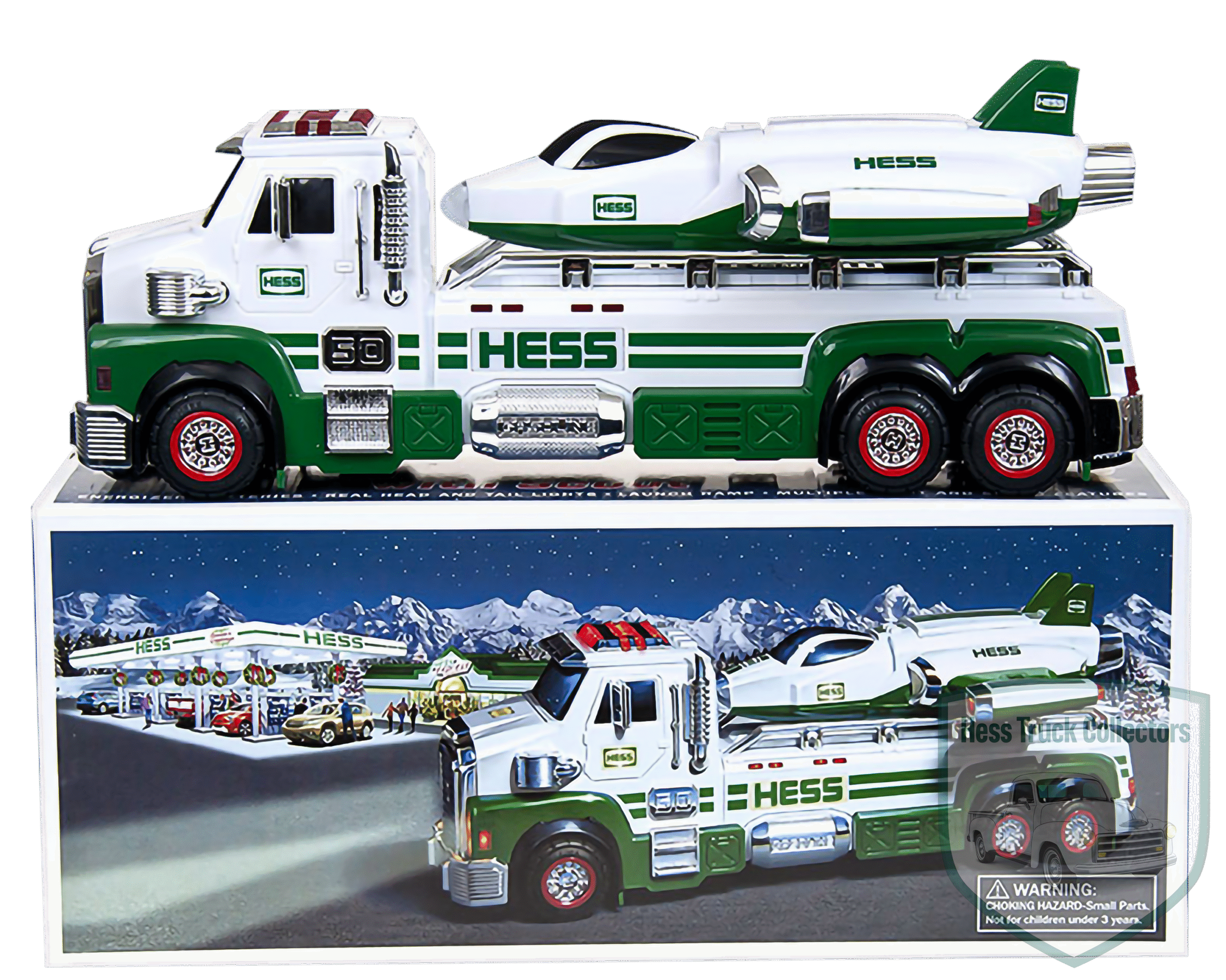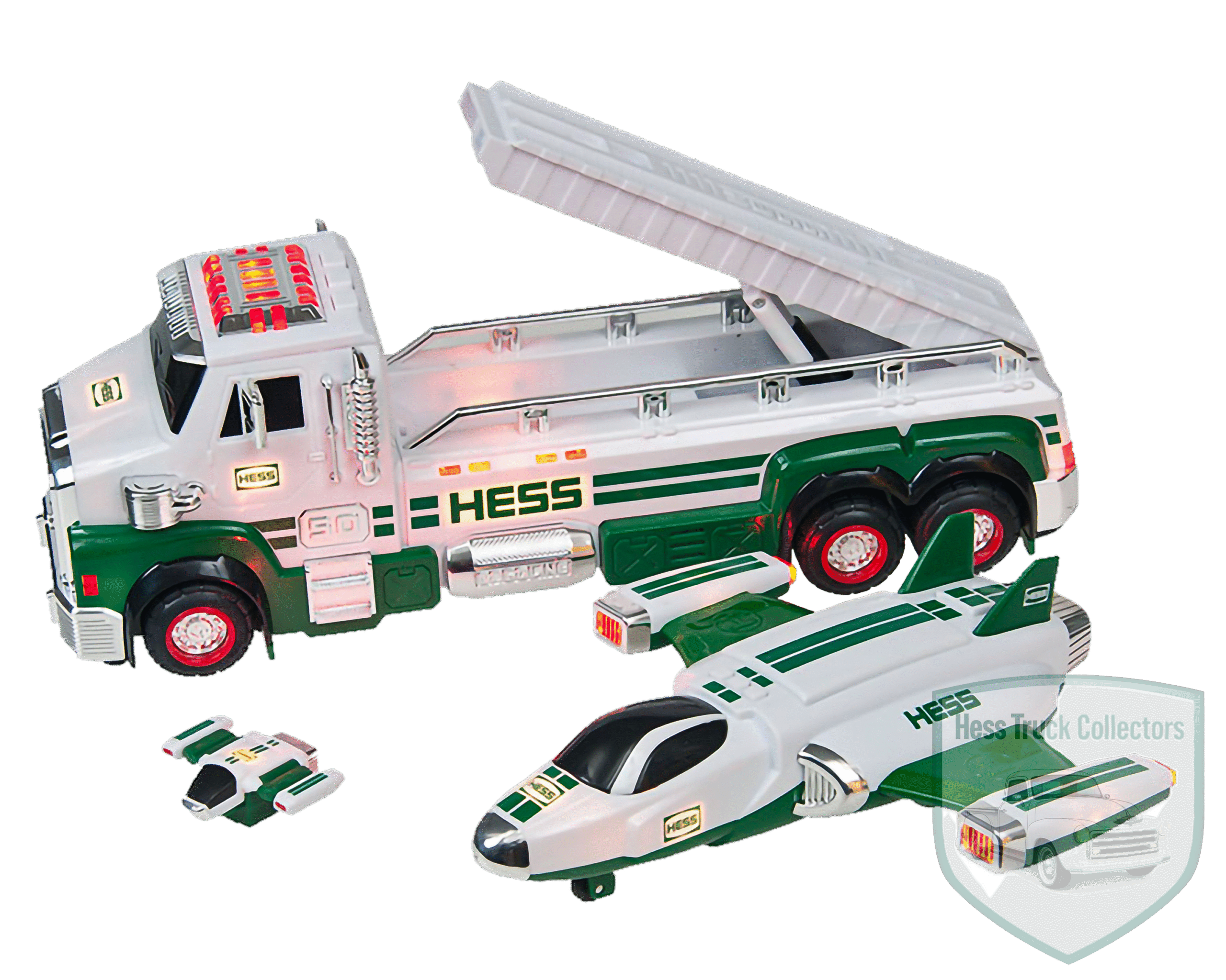 - Color Scheme: Classic Hess white and green livery. The Space Cruiser and Scout feature red and chrome accents.