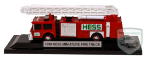 - Mini Fire Truck: A small-scale version of the 1970 Hess Toy Fire Truck. It includes working emergency lights, a rotating chrome fire nozzle, and a movable ladder.