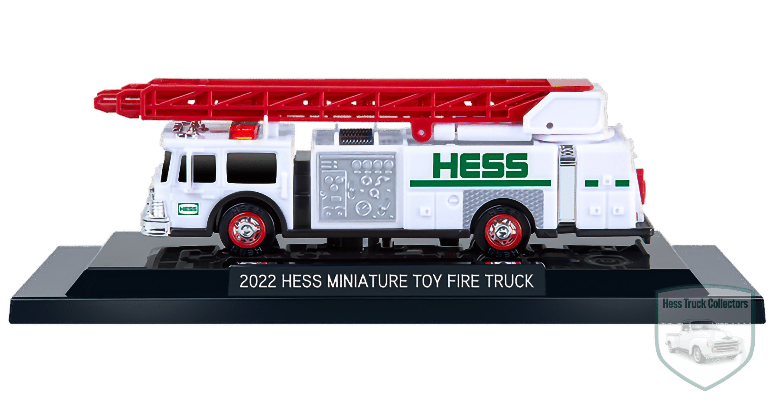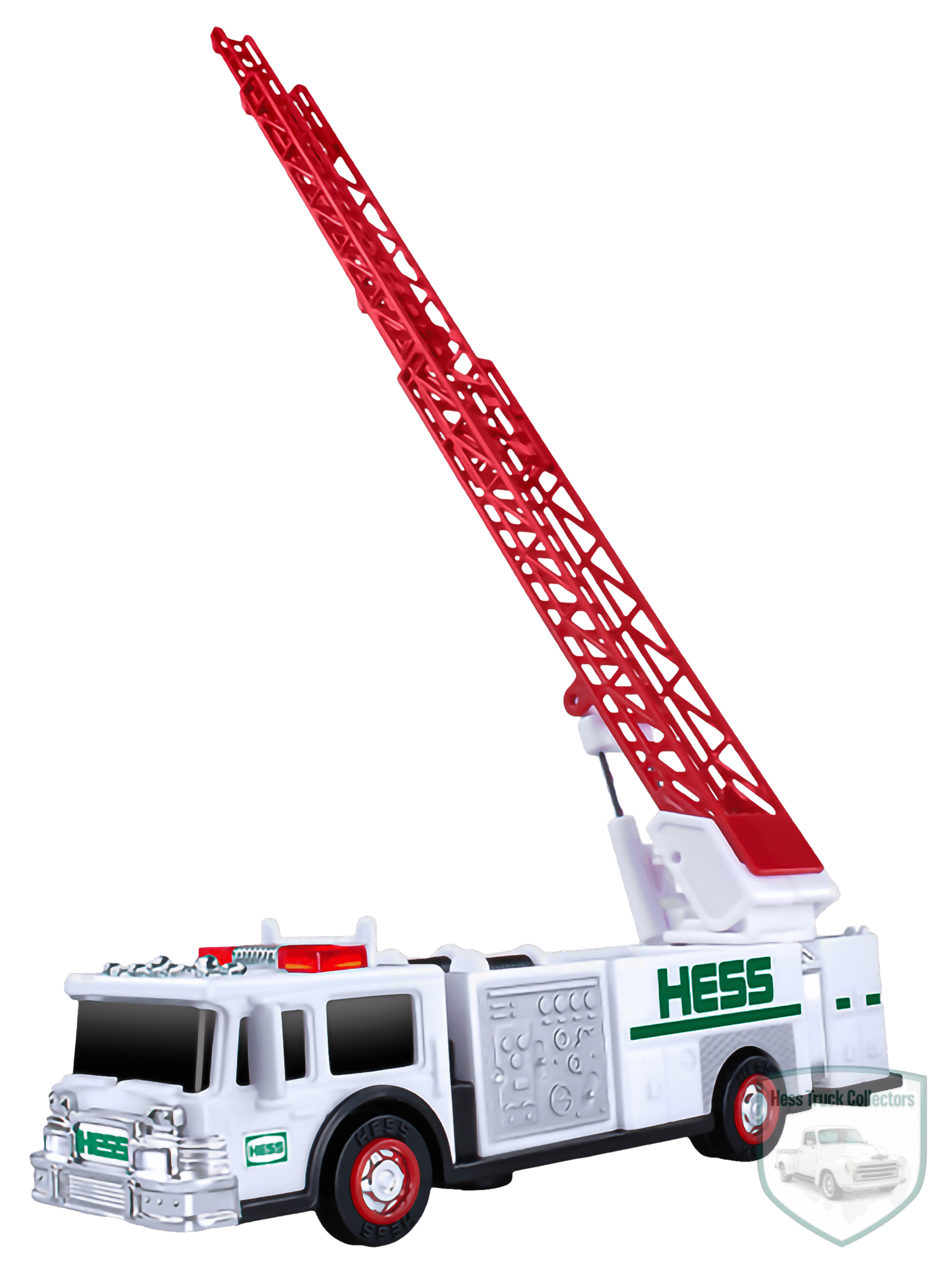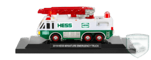 | Miniature Fire Truck | 1989 Hess Fire Truck Bank | A small-scale replica of the white and green fire truck. Features working emergency lights and a 3-tiered ladder that extends and rotates 360 degrees (up to 11 inches). |